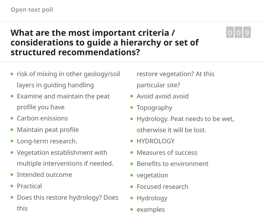 - Recommendation 1c: Peat reuse implementation principles: to guide the site-specific choice of methods and implementation to maximise environmental outcomes.